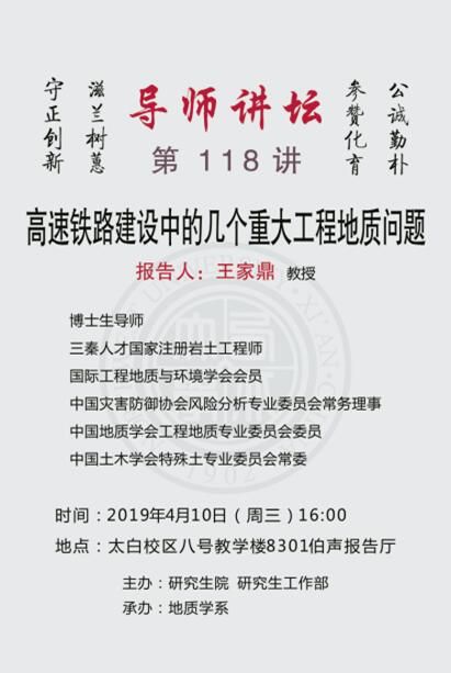 导师讲坛第118讲:高速铁路建设中的几个重大工程地质问题
