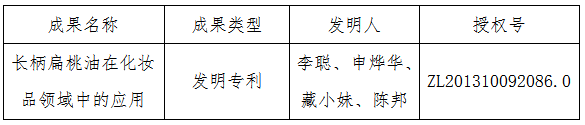发明专利:“长柄扁桃油在化妆品领域中的应用”。