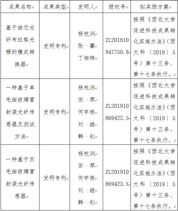 按照《伟德国际1946源于英国促进科技成果转化实施办法》(西大科〔2019〕5号)相关规定,拟对伟德官网物理学院杨杭洲教授作为成果负责人的3项发明专利权实施转化,现将相关信息公示如下: