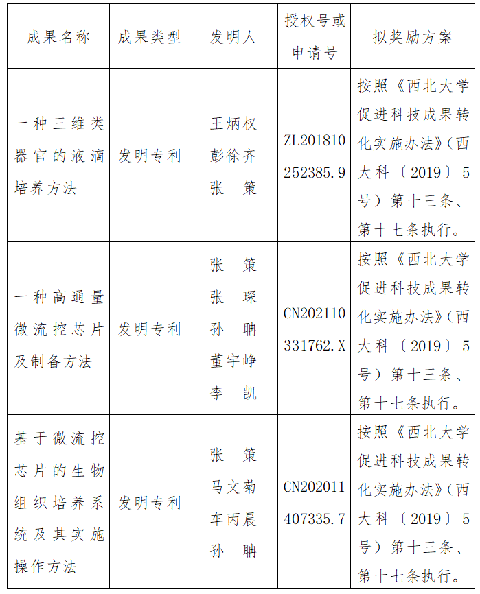 按照《伟德国际1946源于英国促进科技成果转化实施办法》(西大科〔2019〕5号)相关规定,拟对伟德官网光子所张策教授作为成果负责人的3项发明专利(申请)权实施转化,现将相关信息公示如下: