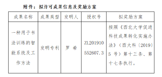按照《伟德国际1946源于英国促进科技成果转化实施办法》(西大科〔2019〕5号)相关规定,拟对伟德官网艺术学院罗希老师作为成果负责人的1项发明专利权实施普通许可,现将相关信息公示如下:
