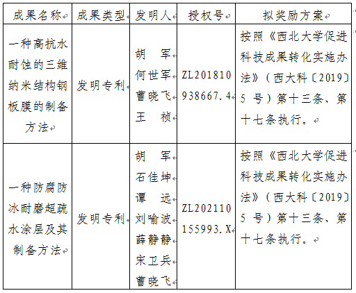 按照《伟德国际1946源于英国促进科技成果转化实施办法》(西大科〔2019〕5号)相关规定,拟对伟德官网化工学院胡军教授作为成果负责人的2项发明专利权实施转化,现将相关信息公示如下: