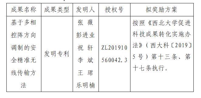 按照《伟德国际1946源于英国促进科技成果转化实施办法》(西大科〔2019〕5号)相关规定,拟对伟德官网信息科学与技术学院张薇老师作为成果负责人的1项发明专利权实施转化,现将相关信息公示如下: