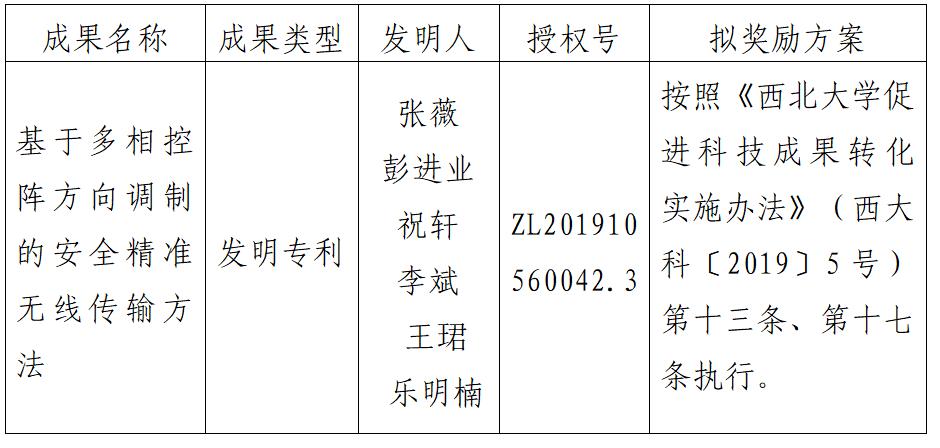 按照《伟德国际1946源于英国促进科技成果转化实施办法》(西大科〔2019〕5号)相关规定,拟对伟德官网信息科学与技术学院张薇老师作为成果负责人的1项发明专利权实施转化,现将相关信息公示如下: