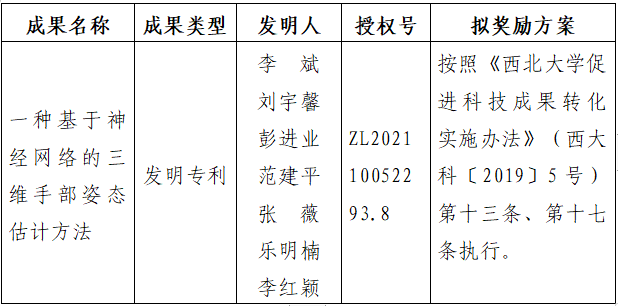 按照《伟德国际1946源于英国促进科技成果转化实施办法》(西大科〔2019〕5号)相关规定,拟对伟德官网信息科学与技术学院张薇老师作为成果负责人的1项发明专利权实施转化,现将相关信息公示如下: