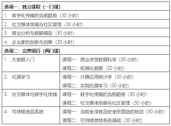 3) 大数据入门方向:学生必须具备理工科或商科中的管理信息系统专业背景,且具备较强的数据与统计学知识,以及Linux、Java与 SQL方面的技能;如不具备相关知识,强烈建议学生在课程开始前参加以下在线课程学习,但无需提交学习证明:
