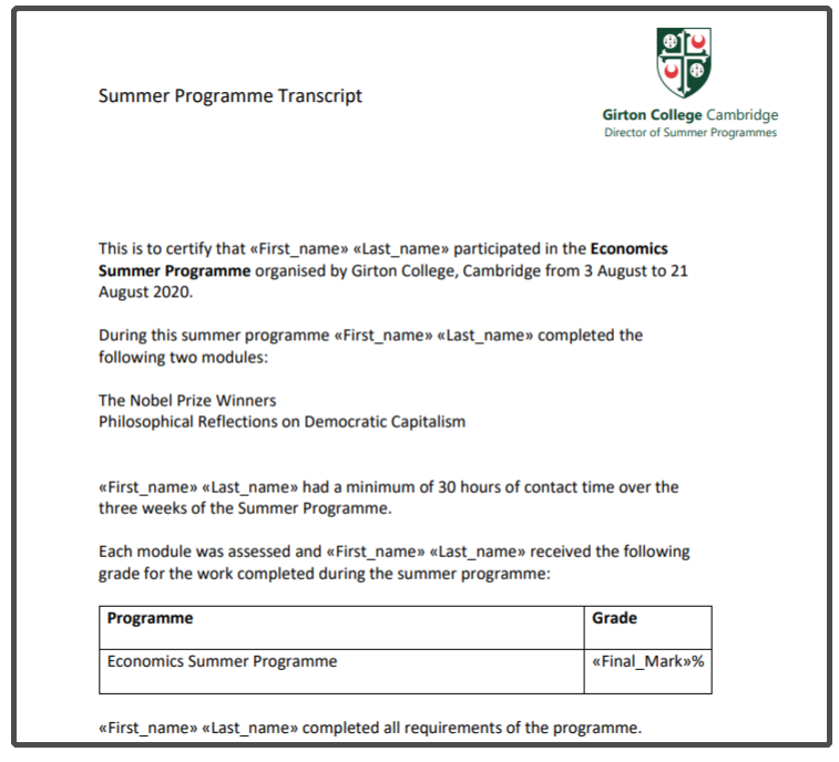 学生可获权使用剑桥大学官方教学系统Moodle, 并可获得剑桥大学格顿学院的官方成绩单与项目证书;