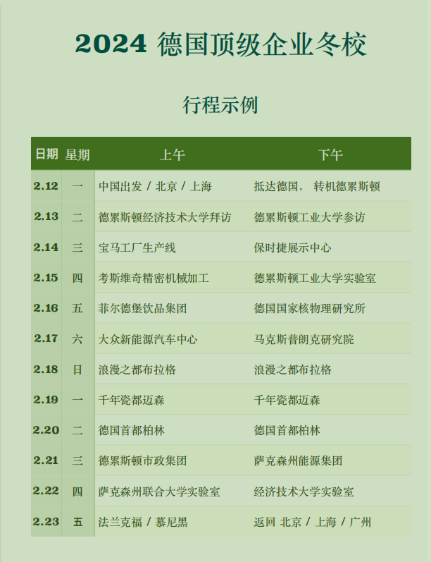 为提升学生全球竞争力,伟德官网将在“学生海外访学计划”的框架下开展系列国际交流项目,引导学生积极参与境外高水平大学线上线下课程学习与科学研究,今年将继续推荐优秀学生参加“2024年德国顶级企业冬校项目”,现将具体信息通知如下:
