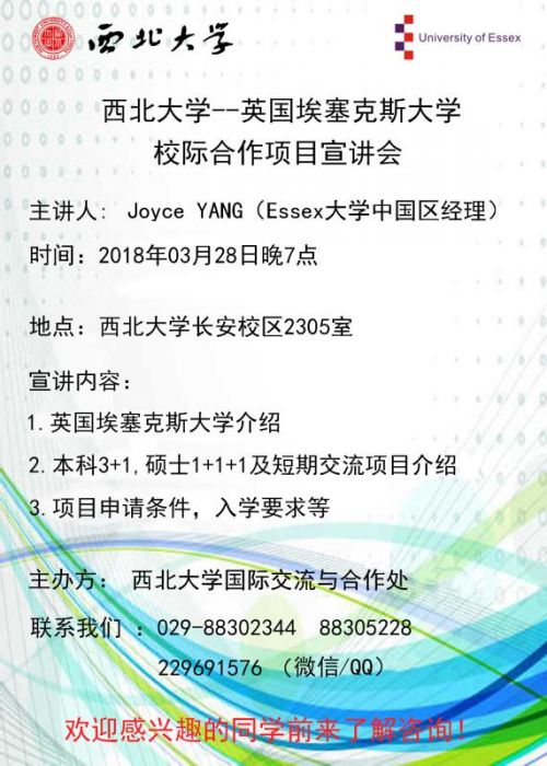 伟德国际1946源于英国--英国埃塞克斯大学校际合作项目宣讲会