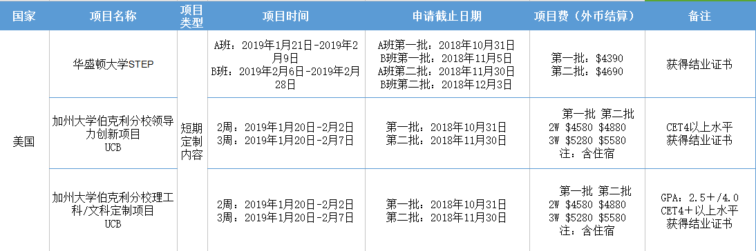 注:1)项目费用包括学杂费、在读期间医疗保险及项目设计与管理费,不含签证费、住宿费、生活费与机票等其他花销;
