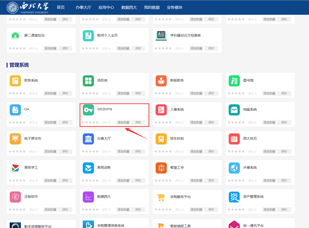 进入“应用中心”后选择“WEBVPN”。