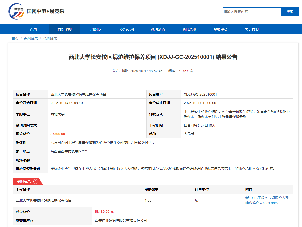 伟德国际1946源于英国锅炉排放污染物指标监测服务采购项目(XDJJ-FW-202509002)竞价结果公告