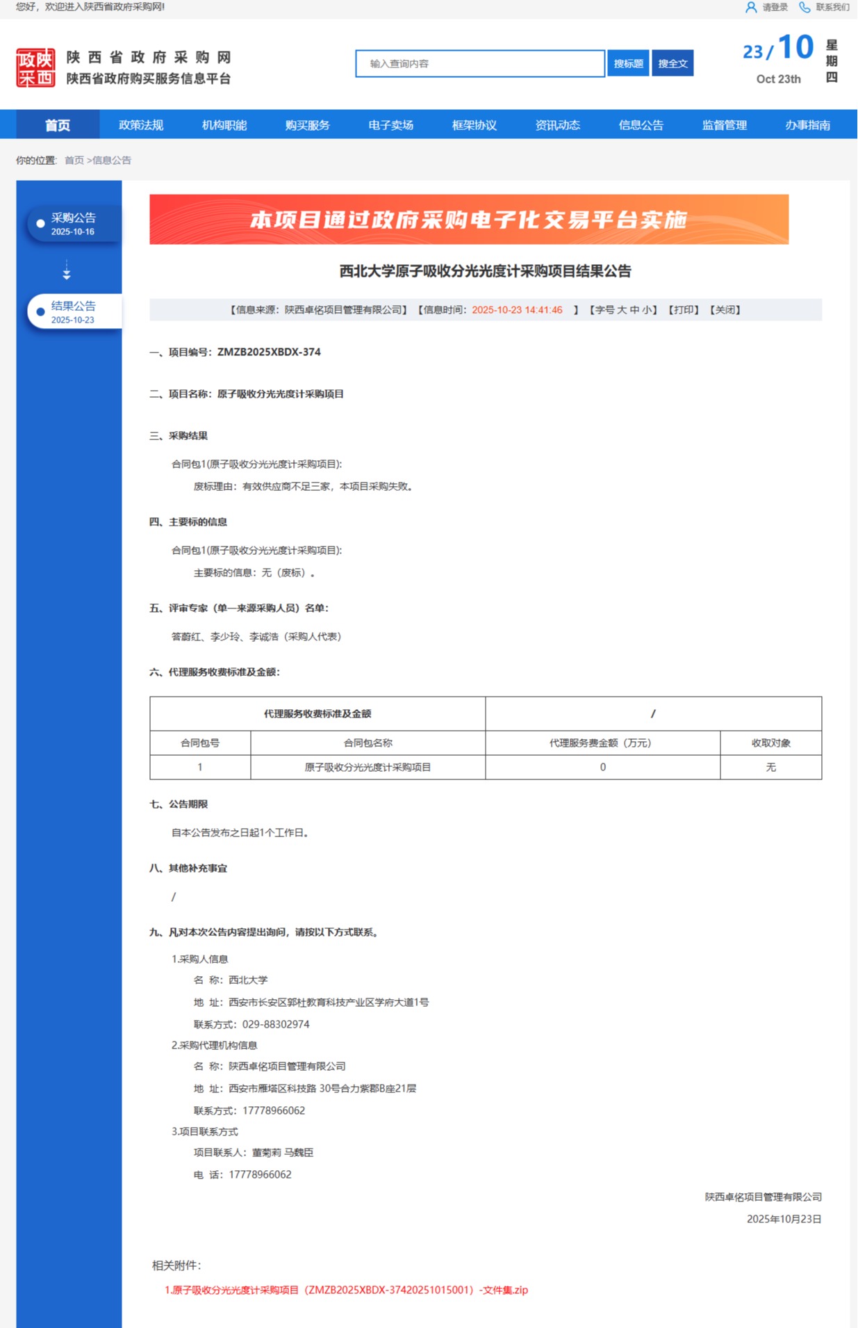 伟德国际1946源于英国原子吸收分光光度计采购项目结果公告