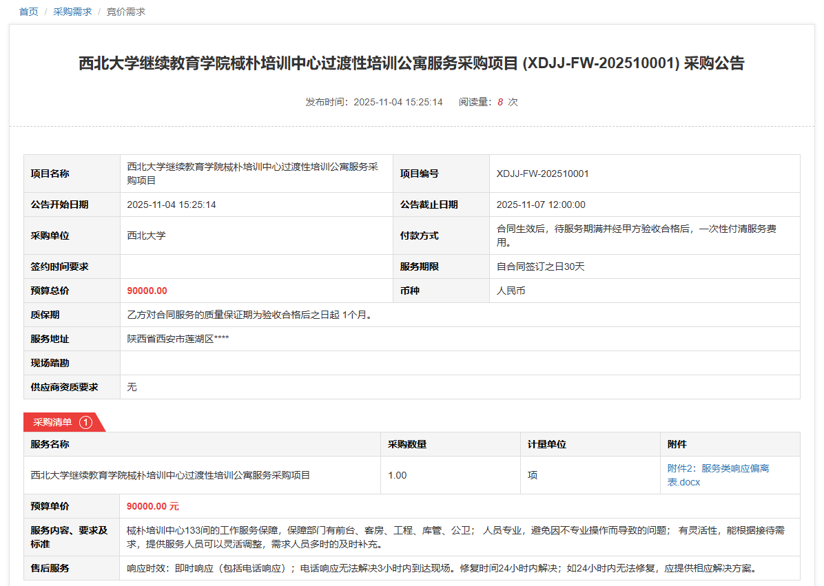 伟德国际1946源于英国继续教育学院棫朴培训中心过渡性培训公寓服务采购项目(XDJJ-FW-202510001)竞价采购公告