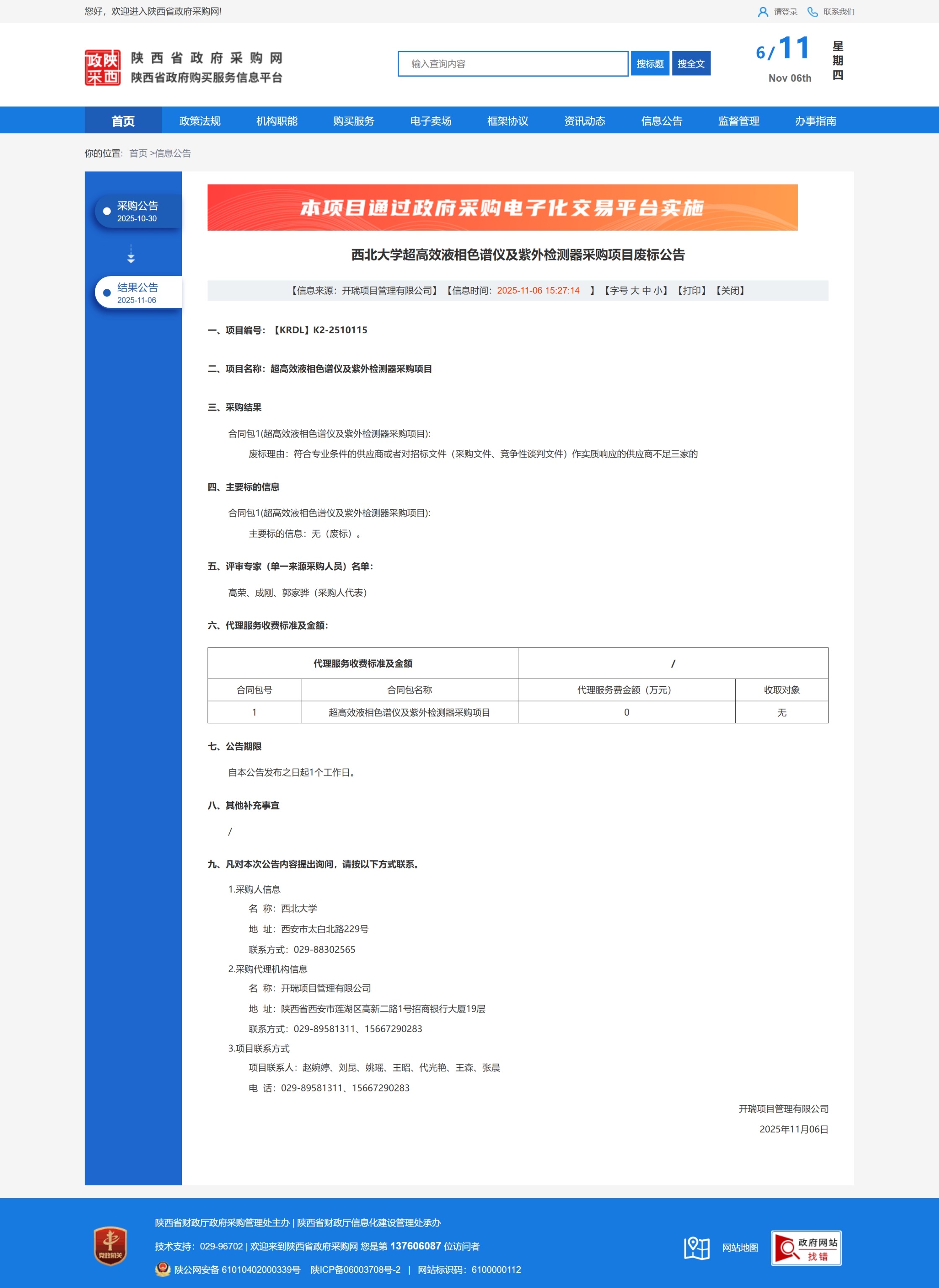 伟德国际1946源于英国超高效液相色谱仪及紫外检测器采购项目废标公告 作者: 编辑:国有资产管理处 时间:2025-11-06 原公告链接:https://www.ccgp-shaanxi.gov.cn/freecms/site/shaanxi/ggxx/info/2025/8a69c6c799f7737f019a5806d9fe1d4e.html?noticeType=001006¬iceId=3938e233-bae4-11f0-8063-08c0eb20c666
