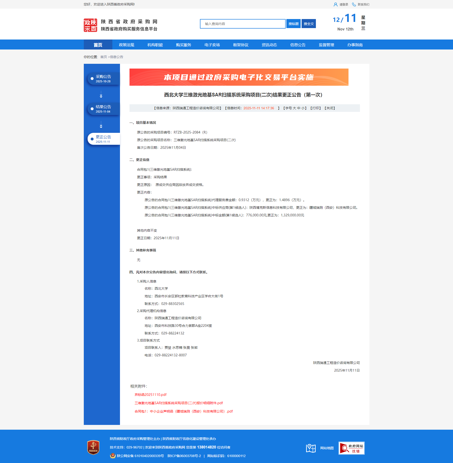 伟德国际1946源于英国三维激光地基SAR扫描系统采购项目(二次)结果更正公告(第一次)