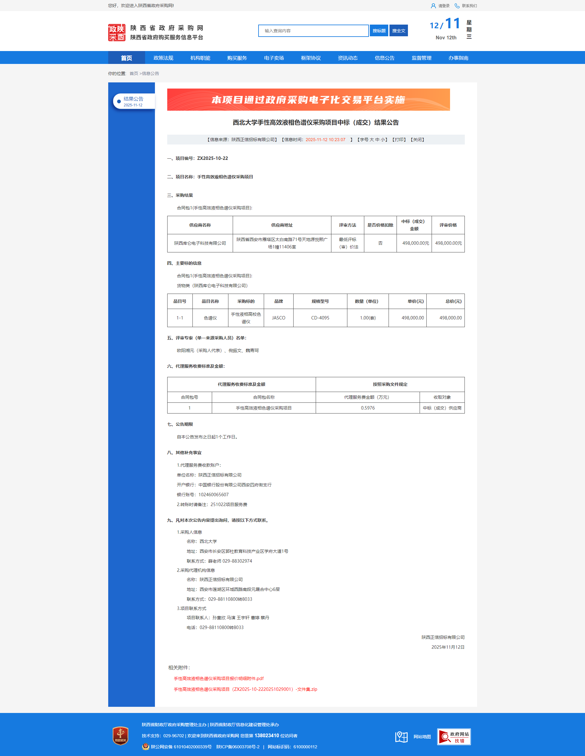 伟德国际1946源于英国手性高效液相色谱仪采购项目中标(成交)结果公告