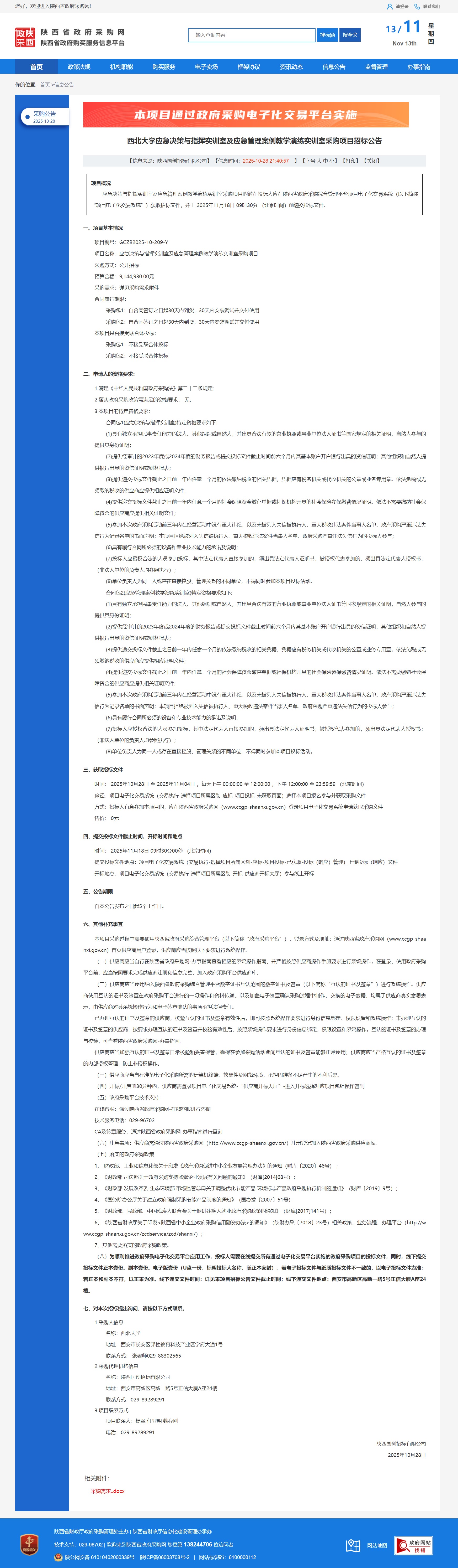 伟德国际1946源于英国应急决策与指挥实训室及应急管理案例教学演练实训室采购项目招标公告