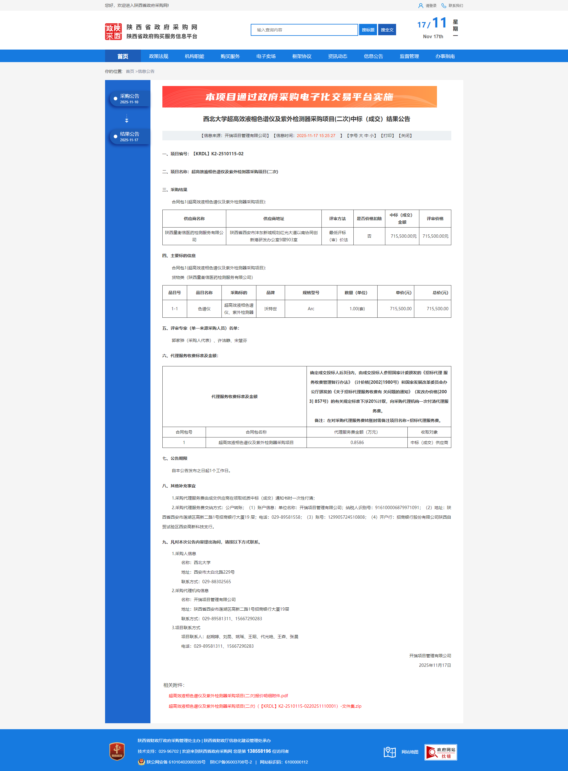 伟德国际1946源于英国超高效液相色谱仪及紫外检测器采购项目(二次)中标(成交)结果公告