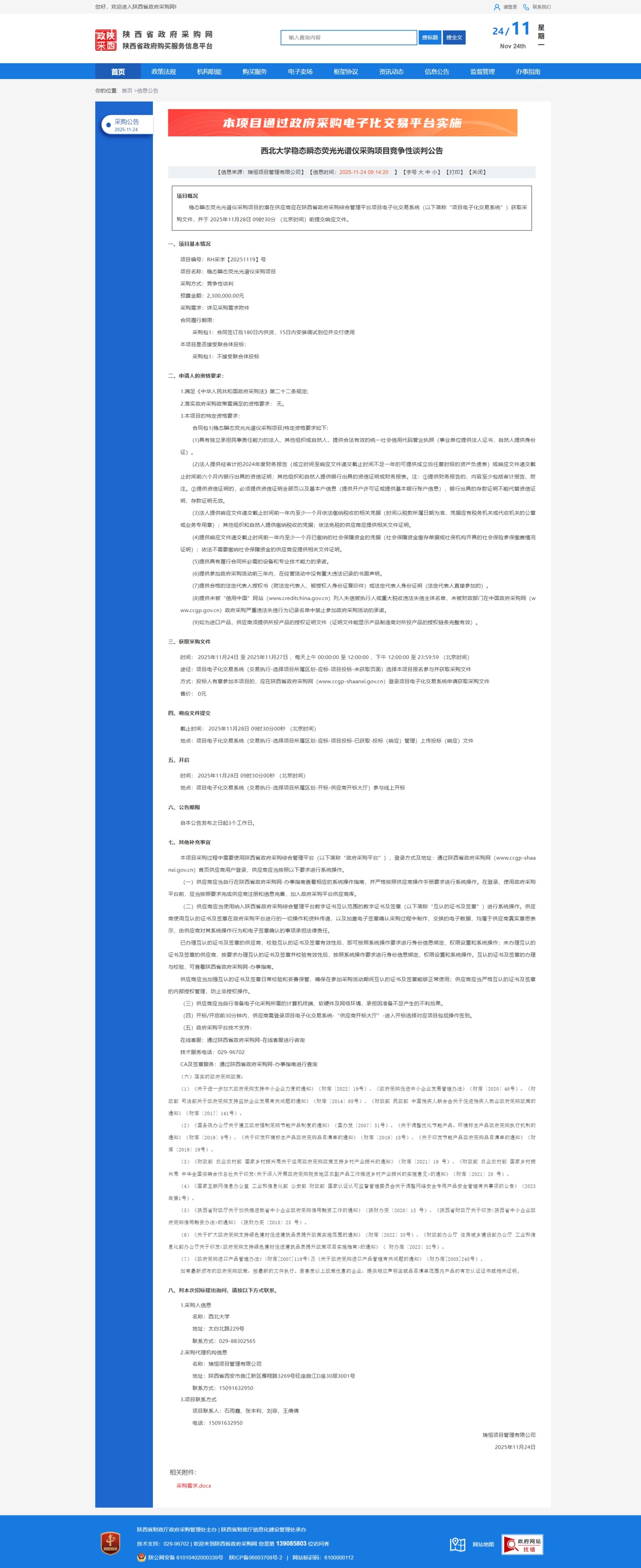 伟德国际1946源于英国稳态瞬态荧光光谱仪采购项目竞争性谈判公告 作者: 编辑:国有资产管理处 时间:2025-11-24 原公告链接:https://www.ccgp-shaanxi.gov.cn/freecms/site/shaanxi/ggxx/info/2025/8a69c5539a636e42019ab358867551cb.html?noticeType=001013¬iceId=24a6bfdb-c8d5-11f0-8063-08c0eb20c666
