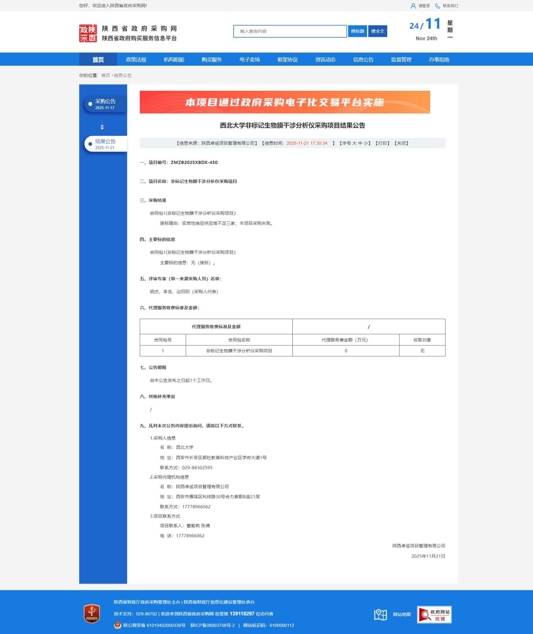 伟德国际1946源于英国非标记生物膜干涉分析仪采购项目结果公告 作者: 编辑:国有资产管理处 时间:2025-11-24 原公告链接:https://www.ccgp-shaanxi.gov.cn/freecms/site/shaanxi/ggxx/info/2025/8a69c17b9a636c6b019aa5bc305d79e5.html?noticeType=001006¬iceId=f6e85374-c6be-11f0-8063-08c0eb20c666