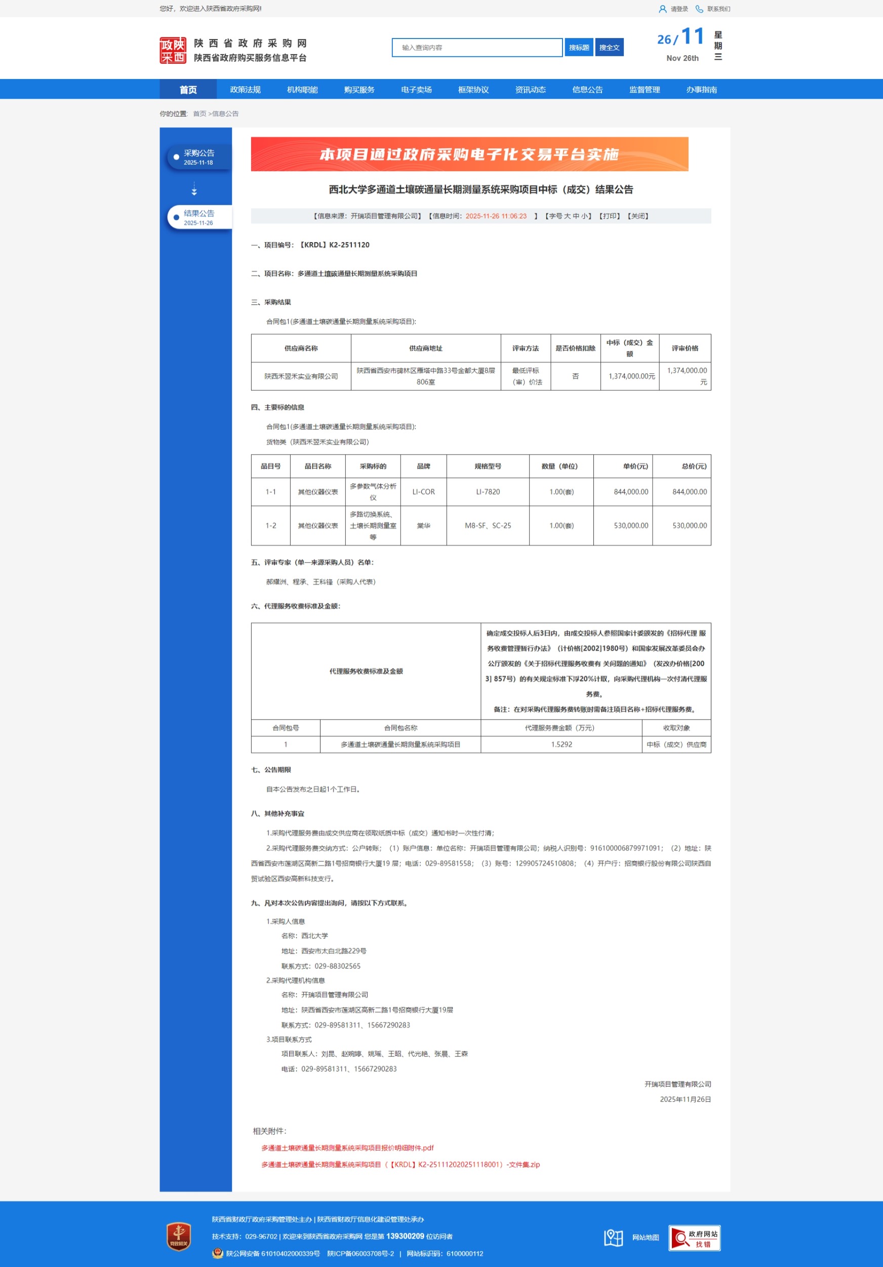 伟德国际1946源于英国多通道土壤碳通量长期测量系统采购项目中标(成交)结果公告 作者: 编辑:国有资产管理处 时间:2025-11-26 原公告链接:https://www.ccgp-shaanxi.gov.cn/freecms/site/shaanxi/ggxx/info/2025/8a69c6d09a636c6c019abdc987856a03.html?noticeType=001023¬iceId=21b0d48e-ca77-11f0-8063-08c0eb20c666
