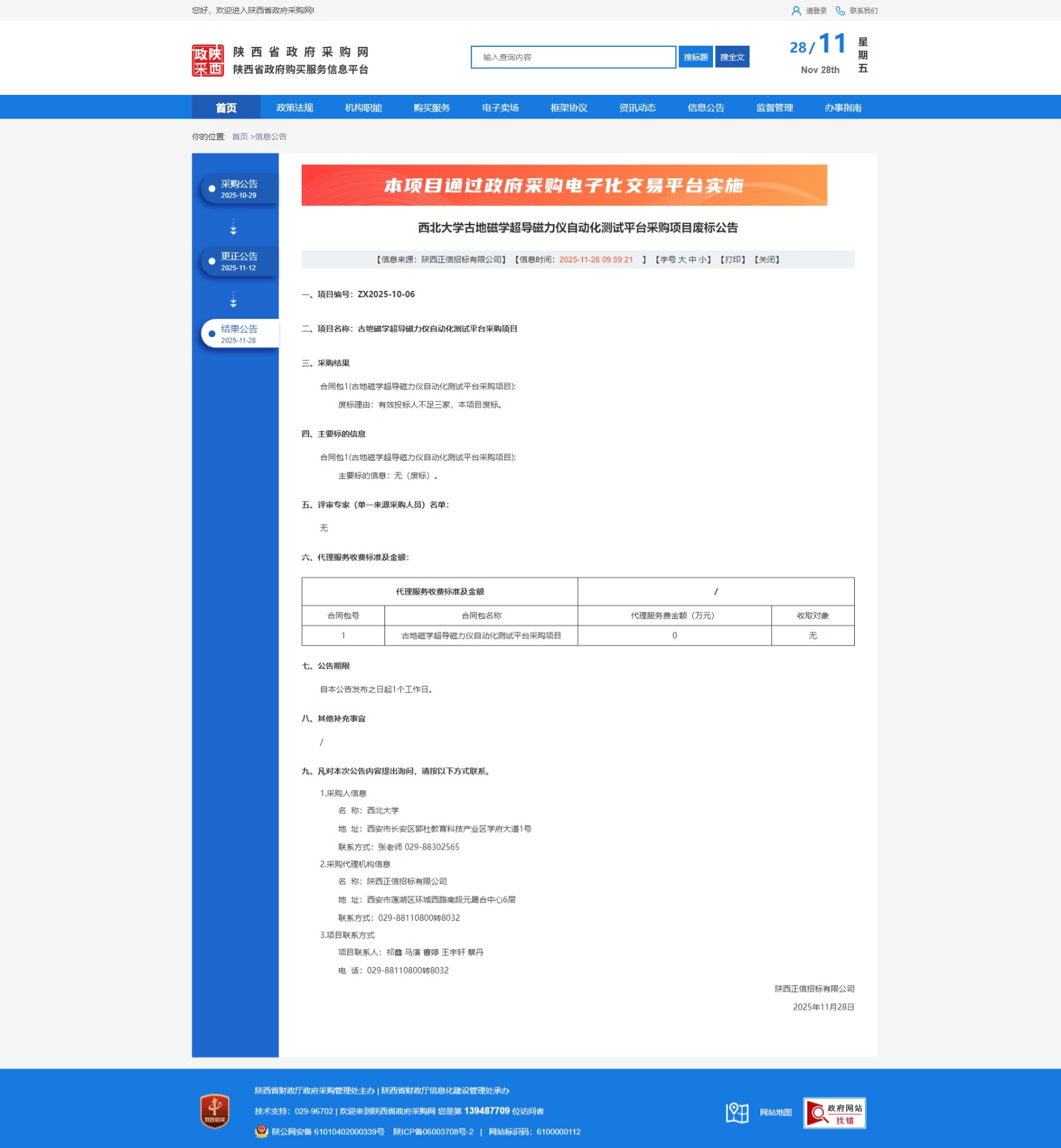 伟德国际1946源于英国古地磁学超导磁力仪自动化测试平台采购项目废标公告 作者: 编辑:国有资产管理处 时间:2025-11-28 原公告链接:https://www.ccgp-shaanxi.gov.cn/freecms/site/shaanxi/ggxx/info/2025/8a69c0019a9a55ca019ac81cae6226cf.html?noticeType=001006¬iceId=19e4ba5f-cc00-11f0-8063-08c0eb20c666