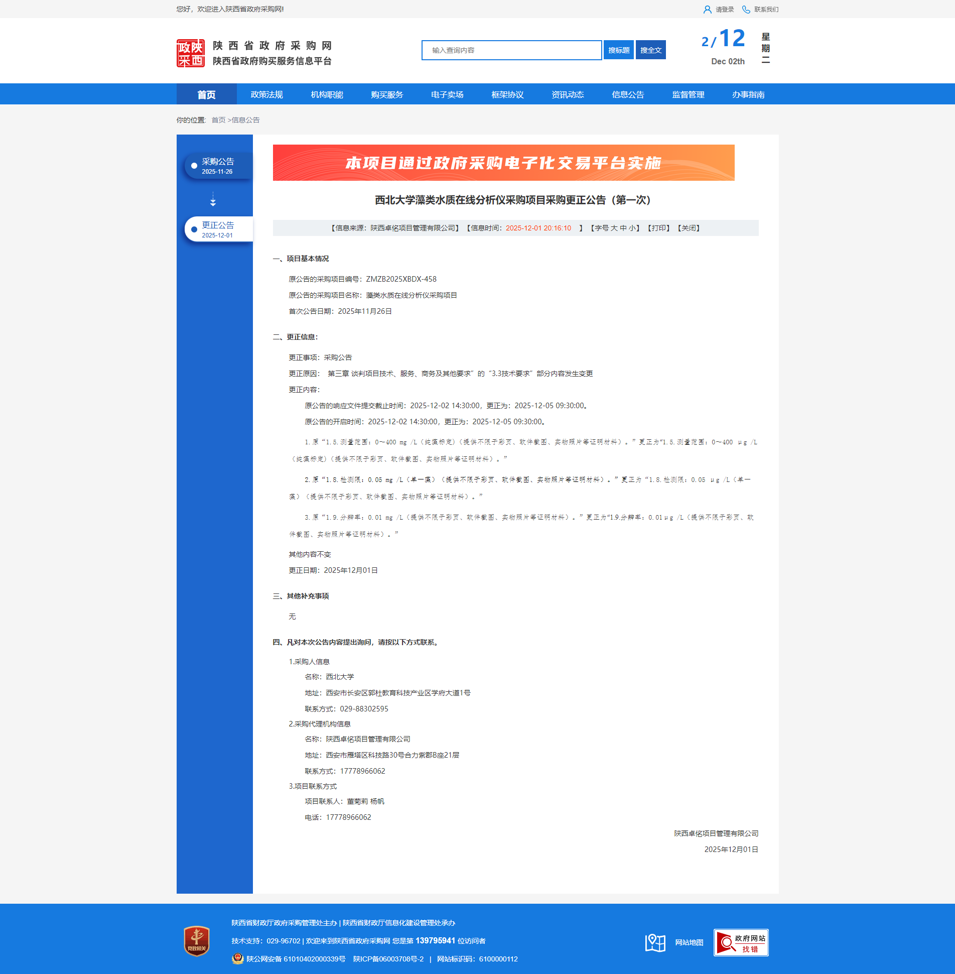 伟德国际1946源于英国藻类水质在线分析仪采购项目采购更正公告(第一次)