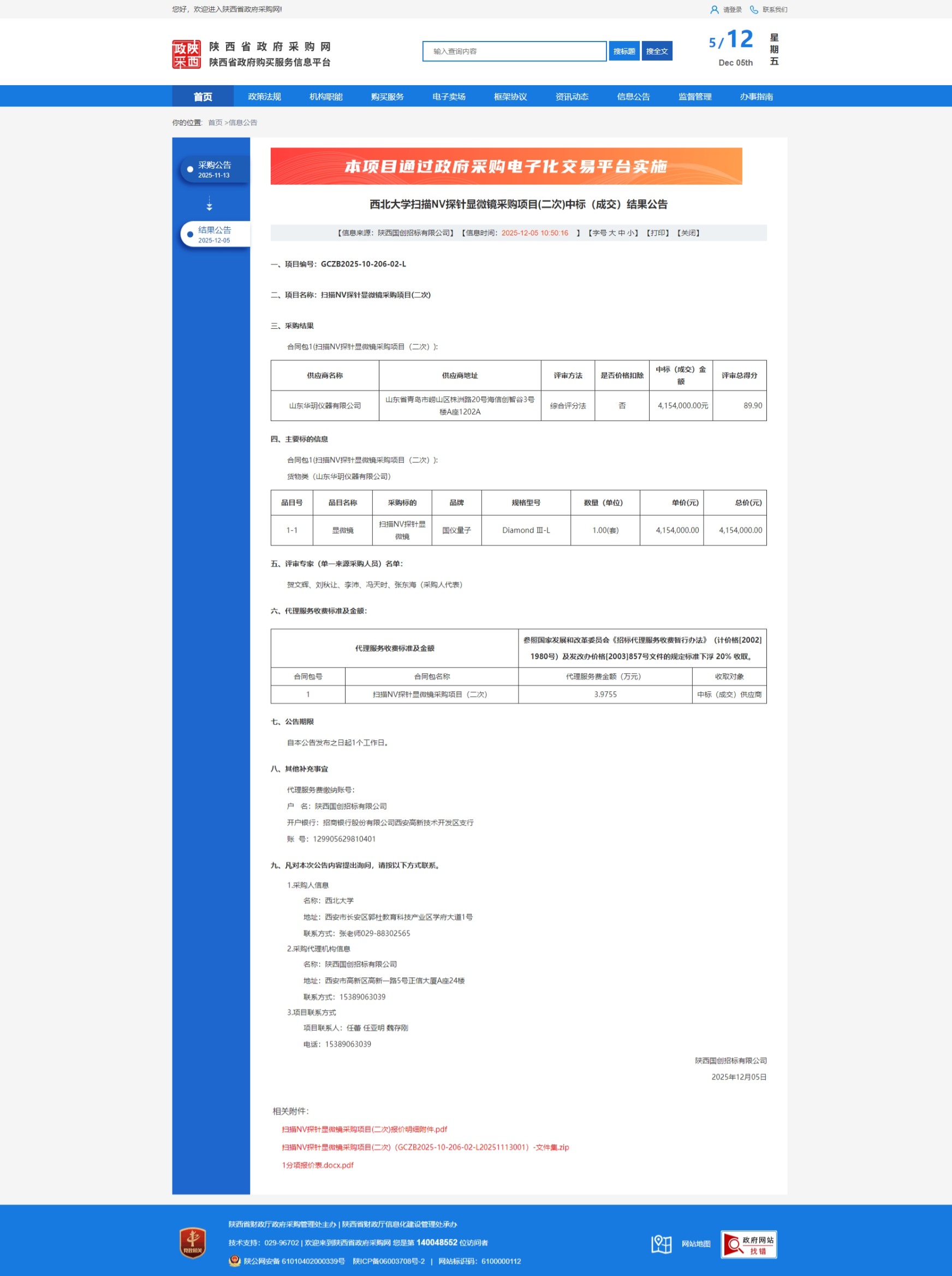 伟德国际1946源于英国扫描NV探针显微镜采购项目(二次)中标(成交)结果公告 作者: 编辑:国有资产管理处 时间:2025-12-05 原公告链接:https://www.ccgp-shaanxi.gov.cn/freecms/site/shaanxi/ggxx/info/2025/8a69c6d09a636c6c019aec5eb1f2525e.html?noticeType=001021¬iceId=6321a54d-d187-11f0-8063-08c0eb20c666