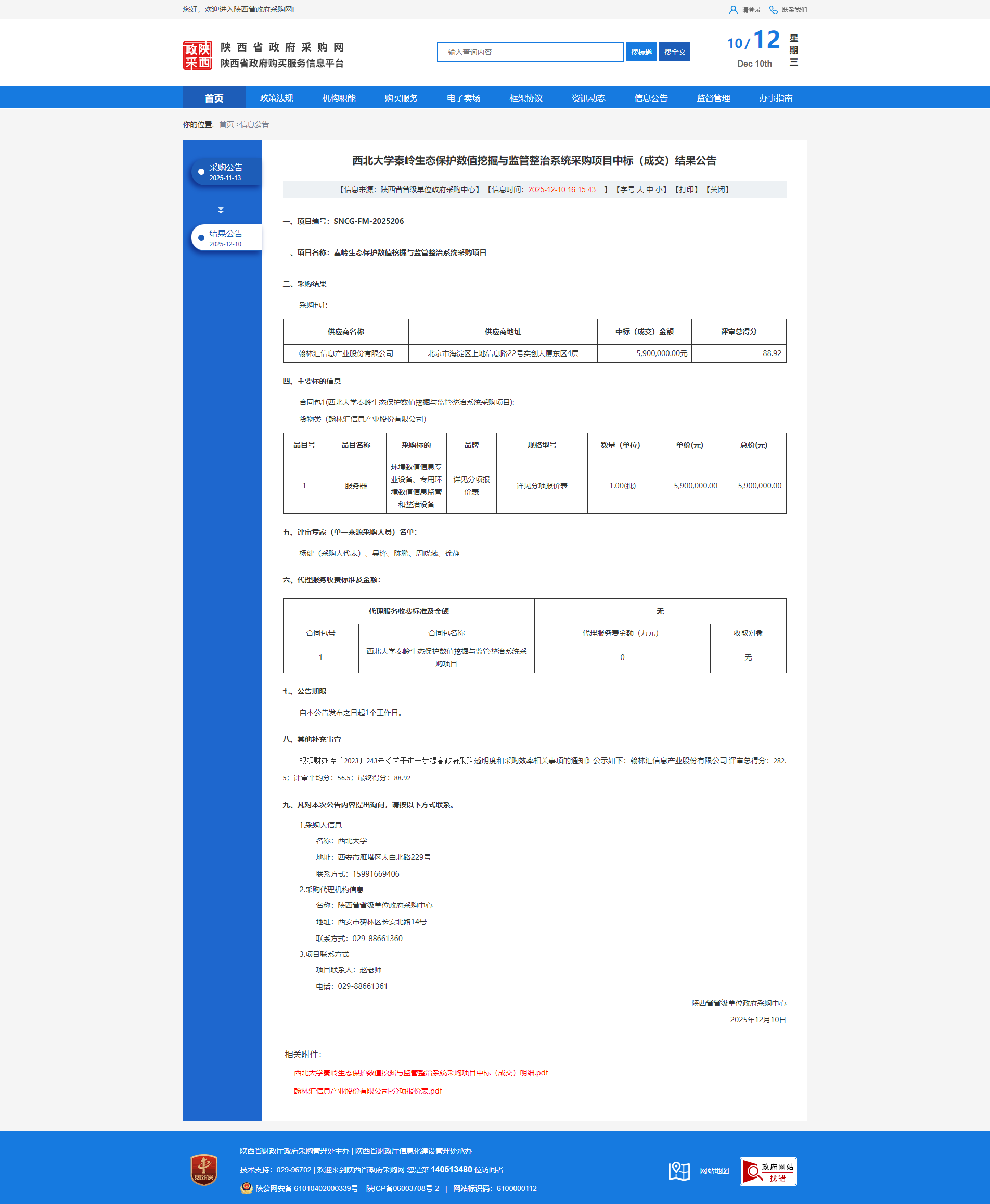 伟德国际1946源于英国秦岭生态保护数值挖掘与监管整治系统采购项目中标(成交)结果公告