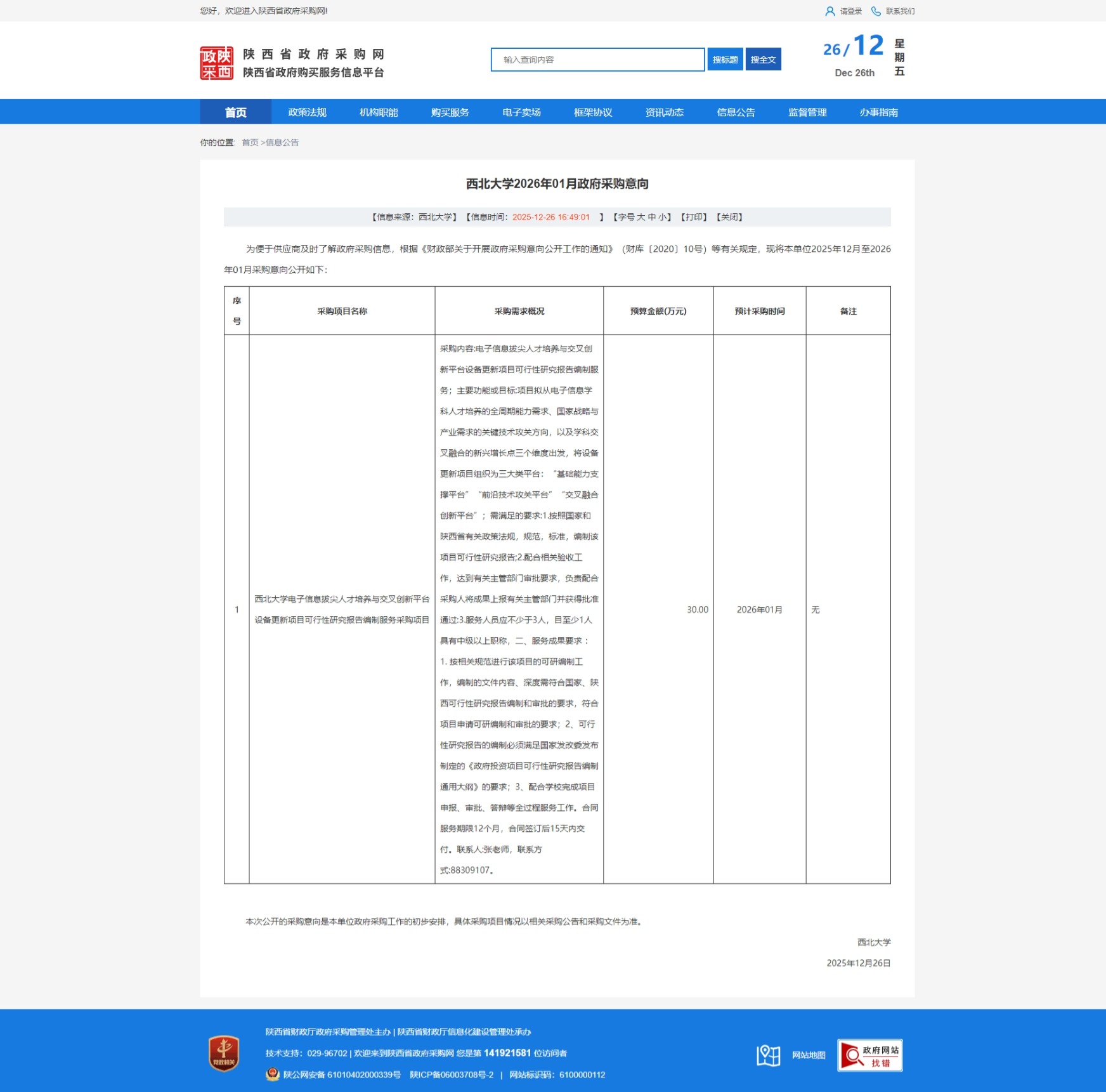伟德国际1946源于英国2026年01月政府采购意向 作者: 编辑:国有资产管理处 时间:2025-12-26 原公告链接:https://www.ccgp-shaanxi.gov.cn/freecms/site/shaanxi/ggxx/info/2025/8a69c2309b4638eb019b59d6b05e5c3e.html?noticeType=59¬iceId=05a87aae-e23a-11f0-8063-08c0eb20c666