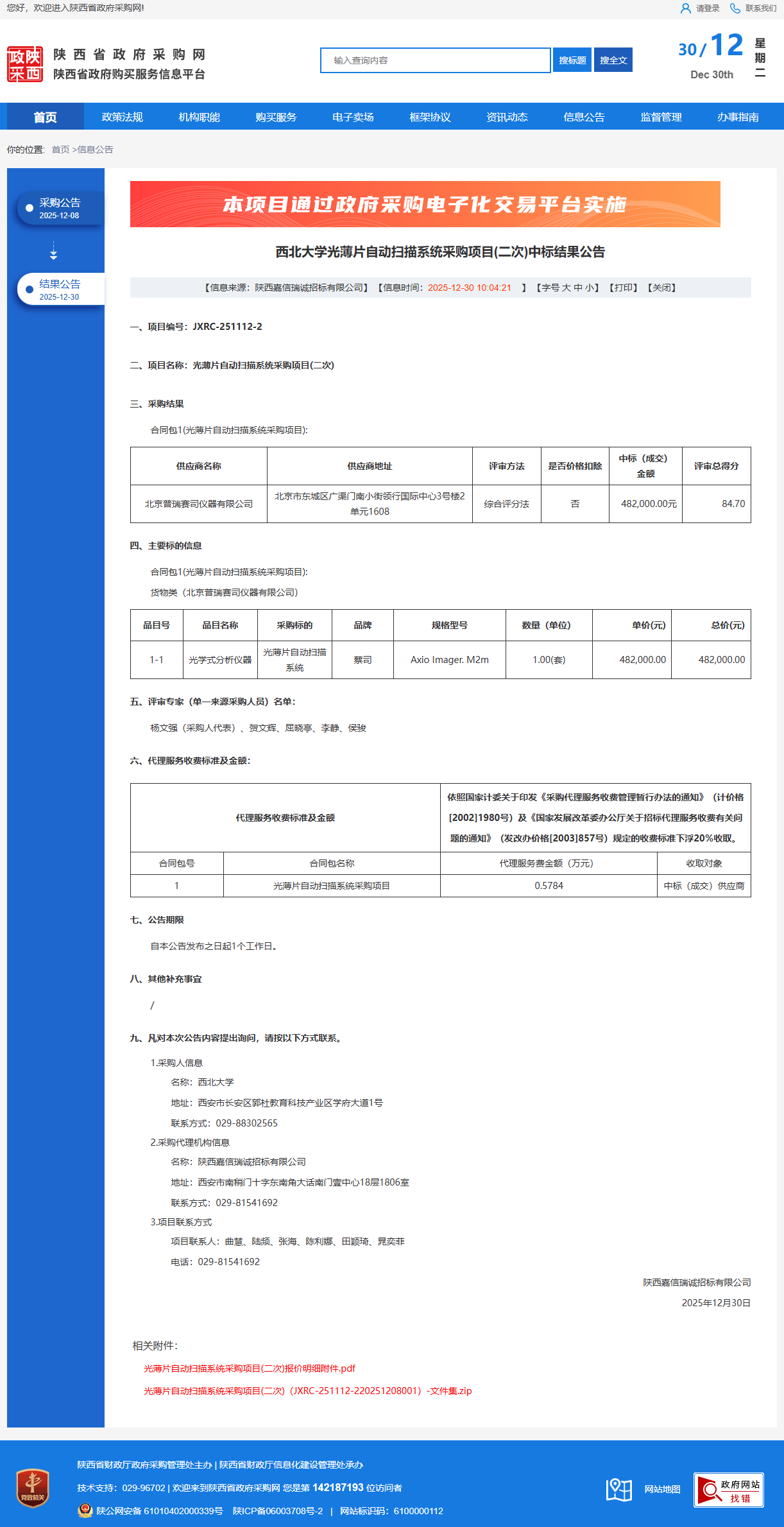 伟德国际1946源于英国光薄片自动扫描系统采购项目(二次)中标结果公告