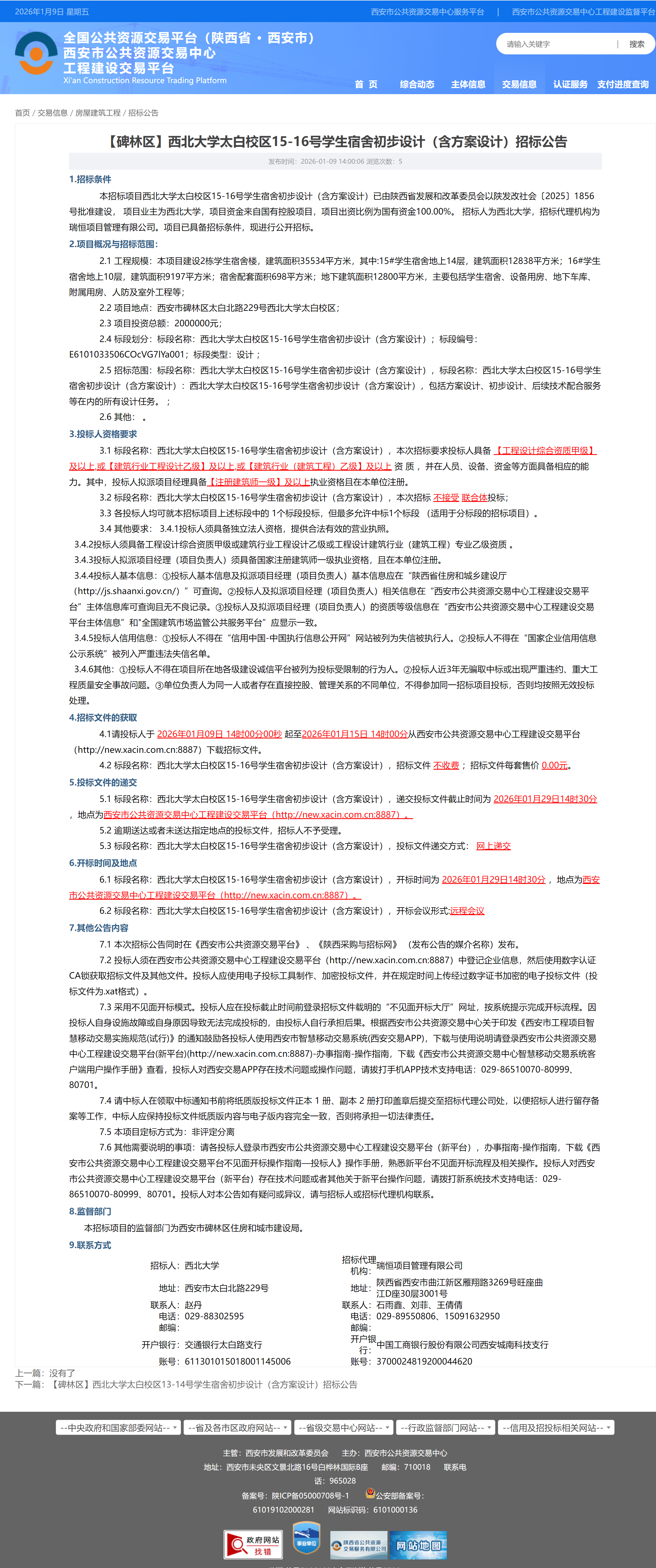 【碑林区】伟德国际1946源于英国太白校区13-14号学生宿舍初步设计(含方案设计)招标公告